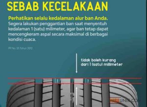 Akhirnya memiliki tinggi yang sama dengan trutwear indikator ini itulah saat di mana Anda harus mengganti ban tinggi dari travel indikator ini adalah 1,6 mm dan itu adalah batas maksimum beban itu bisa digunakan karena lebih tipis lagi dari itu maka ban akan berkurang secara drastis kemampuannya untuk membuang air sehingga berisiko Untuk menimbulkan aquaplanning apa ini atau gejala ban mengambang di atas air ketika melewati genangan,
