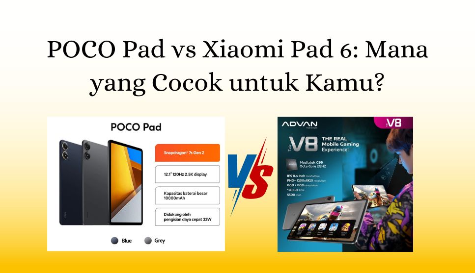 POCO Pad vs Xiaomi Pad 6 – Tablet POCO Pad akhirnya resmi masuk ke pasar Indonesia dan langsung bikin heboh dengan harga 3 jutaan. Harga yang nggak terlalu mahal, tapi juga nggak bisa dibilang murah. Di sisi lain, Xiaomi Pad 6 sudah lebih dulu hadir di kelas yang sama dengan reputasi yang cukup solid di kalangan pengguna. Keduanya hadir dengan spesifikasi yang cukup menarik. Tapi, dengan selisih harga yang sedikit lebih mahal, pertanyaan utama adalah: mana yang lebih worth it buat kebutuhan kamu? Kalau kamu lagi galau memilih, yuk kita bahas secara lengkap. Mulai dari desain, performa, hingga fitur unggulan yang mereka tawarkan. Setelah baca artikel ini, kamu bakal lebih yakin untuk pilih tablet yang paling sesuai dengan kebutuhan kamu.
